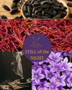 "Still of the Night": A scent for the quiet hours, when the world slows and peace draws near. Let go of trouble and fear and hold on to the stillness and the promises of:
